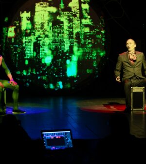 Sul palco insieme al cantante due performer: Alessandro Canciani e Monica De Bonis, il trio ripercorre la storia della band fino ad arrivare al capitolo più personale e profondo di Repetto.